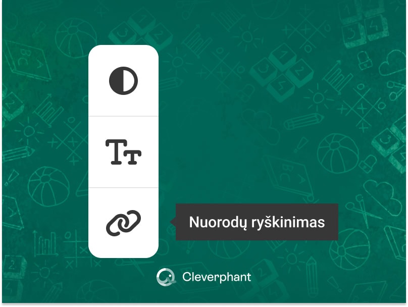 - nuorodų paryškinimas: yra galimybė įjungti „Ryškias nuorodas“, kurios padeda lengviau atskirti nuorodas nuo kito teksto.